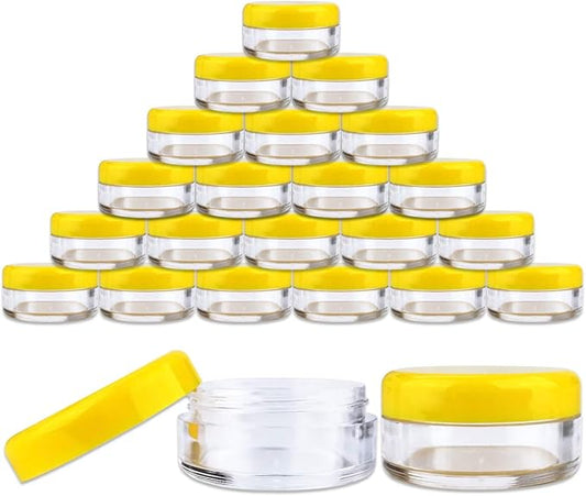 (Quantity: 25 Pieces) Beauticom 5G/5ML Round Clear Jars with Yellow Lids for Lotion, Creams, Toners, Lip Balms, Makeup Samples