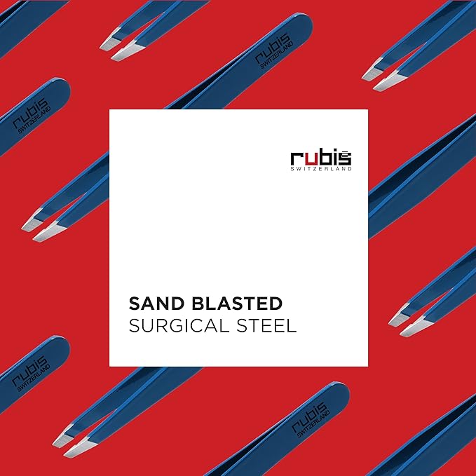 Rubis Classic Stainless Steel Slanted Tweezers for Precise Eyebrows and Hair Removal, 1K109, Made in Switzerland, Blue