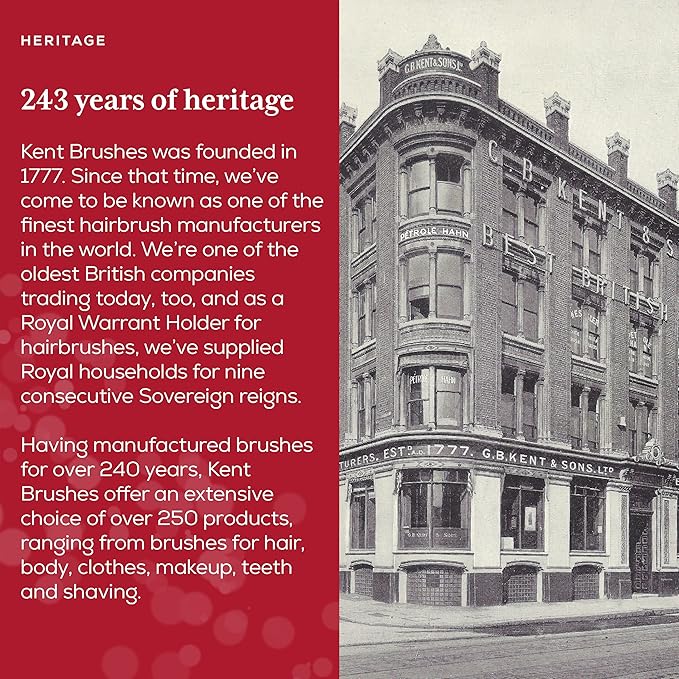 - Made in England since 1777 By KENT the World's Oldest Hairbrush Manufacturer and holders of The Royal Warrant through the last nine consecutive reigns of British monarchy. Size: 15.75" x 2.5" Bristles 1"