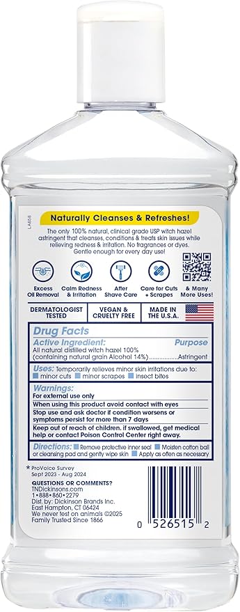 T.N. Dickinson's Witch Hazel 100% Natural Astringent for Face and Body, 8 fl oz