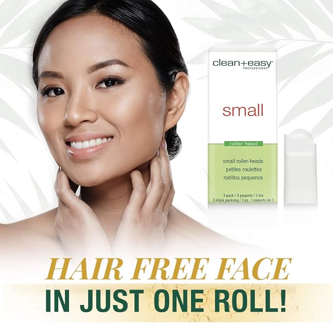 Clean + Easy Small Roller Head – Disposable Roll On Wax Refill Head for DIY Waxing on Eyebrows, Upper Lip, Chin & Small Areas, Easy to Use Waxing Roller Refill, 3-Pack