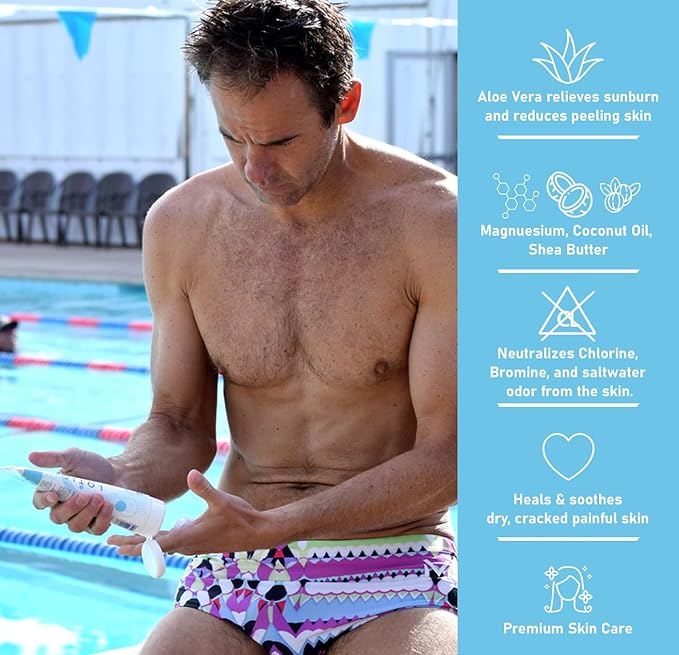 - MAKE YOUR SWIMMING TIME FUN: A must have from our swimmers skin care range. Providing the best swimming experience. This lotion eliminates pool chemicals, relieves itching, moisturises and heals