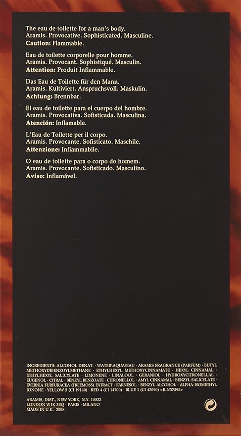 - Scent : Bergamot, cumin, jasmine, patchouli, amber, musk
