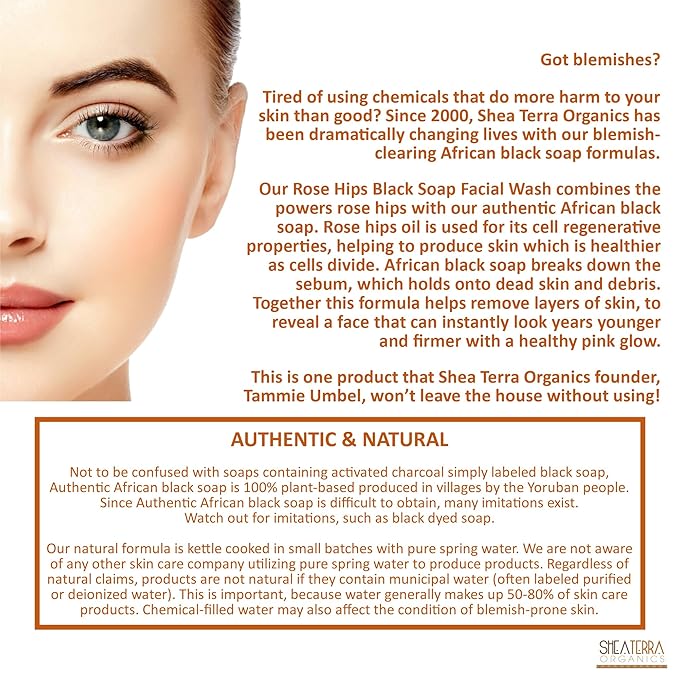 Shea Terra Organics Rose Hips Black Soap Deep Pore Facial Wash | Anti-Aging, Anti-Acne Wonder Soap | All Skin Types - 4 oz