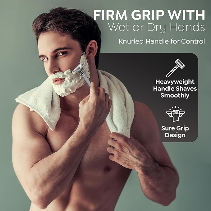 - HEAVYWEIGHT DESIGN – The Heavyweight design of our all metal safety razor makes shaving easier. There is less pulling, tugging and blade drag as the weight of the razor does this work. Less expensive and lighter weight razors simply don’t shave like a Parker Heavyweight