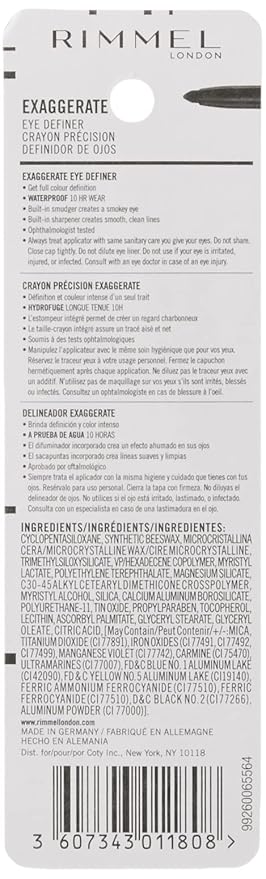 Rimmel London Exaggerate Waterproof Eye Definer Eyeliner, Highly Pigmented, Long-Wearing, Built-In Smudger, 261, Noir, 0.01oz