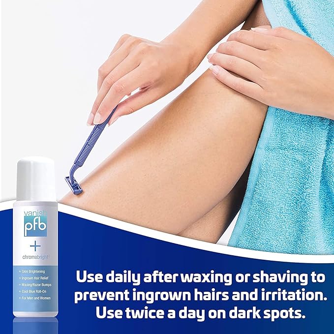 PFB Vanish Razor Bump Stopper Skin Care Treatment with Chromabright Dark Spot Remover, Roll On Formula Treats Ingrown Hairs and Razor Burns - 93g