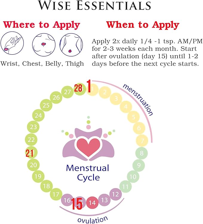 - EASY TO USE: Use 30-60 days for best results. Rub 1/4 to 1 tsp on your body am and PM on thighs, tummy, arms or wrists for two to three weeks. Wise Essentials Wild Yam Progesterone Cream is made for women of all ages. Use 30 to 90 days to see the best results