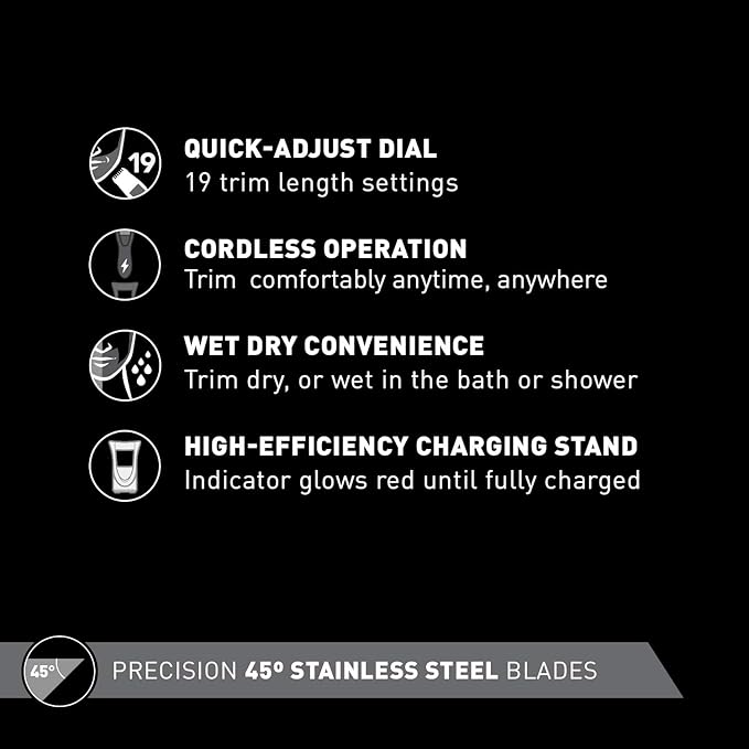 - Adjustable Beard Trimmer Dial: The quick adjust trimmer dial provides 19 precision settings for personalized sculpting, trimming, cutting and detailing