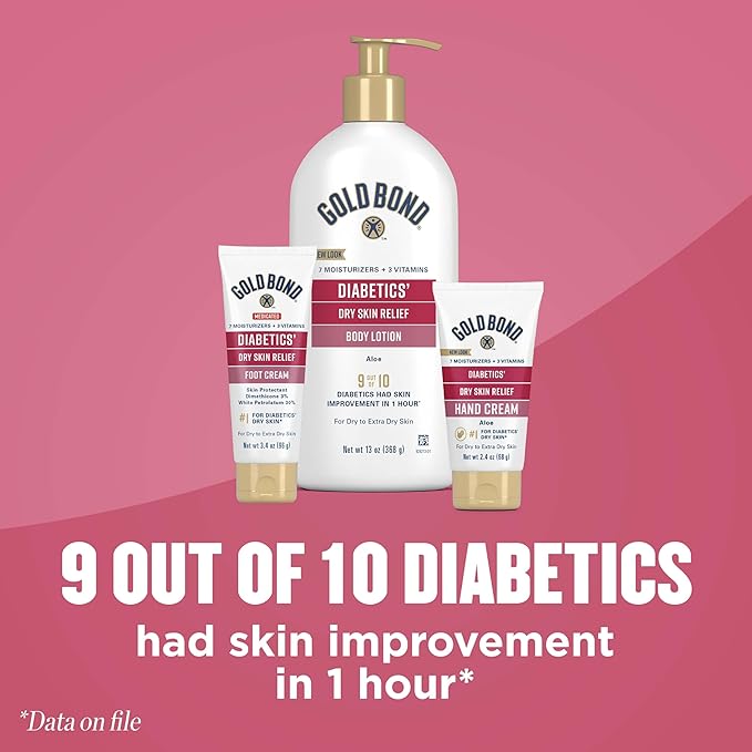 - Gold Bond Diabetics' Dry Skin Relief Foot Cream soothes dry skin with 7 moisturizers and 3 nourishing vitamins
