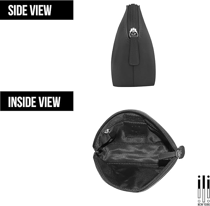 ili New York Genuine Leather Cosmetic Pouch – RFID Blocking, Leather Makeup Bag for Purse with Top Zip Closure & Interior Zip Pocket, Perfect as a Compact and Stylish Travel Cosmetic Bag