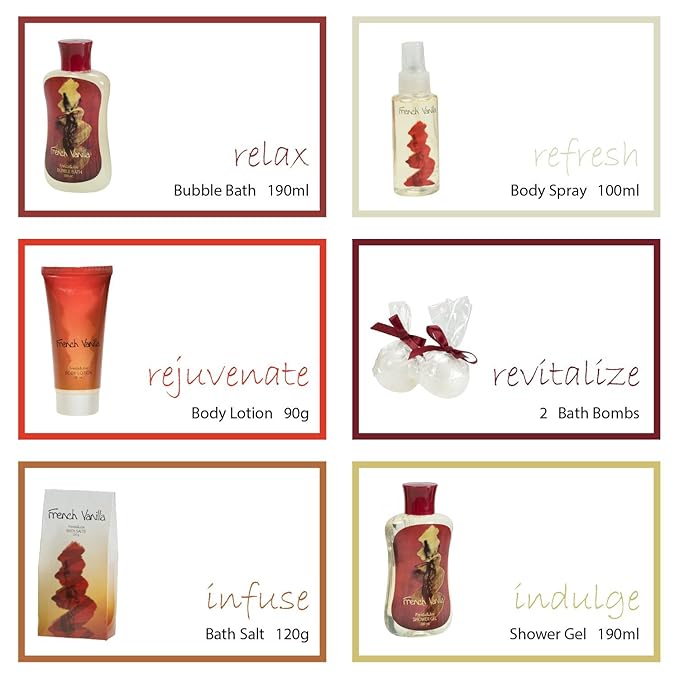 - SHEA BUTTER AND VITAMIN E ENRICHED - 200ml Shower Gel, 200ml Bubble Bath, 120ml Bath Salt, 120ml Body Spray, 100ml Body Lotion, and Bath Bombs, with Shea Butter and Vitamin E to Moisturize, Soothe, and Soften Skin