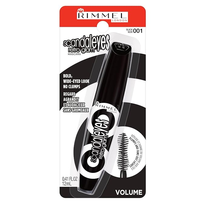 Rimmel London Scandaleyes Retro Glam Mascara, Volumizing, Plumps Lashes, No Clumps, 001, Anime Blue Carded, 0.4oz