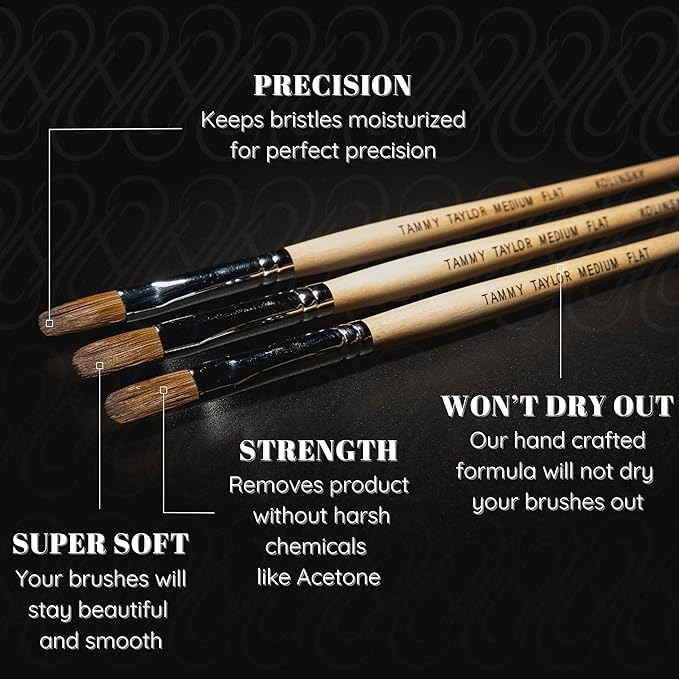 Tammy Taylor Acrylic Nail Brush Cleaner Liquid | Removes Solid Gel Nail Polish, Acrylic Dip Powder | All-in-One Poly Gel Slip Solution + Kolinsky Sable Nail Brush Conditioner, Cleaner & Restorer | 4oz