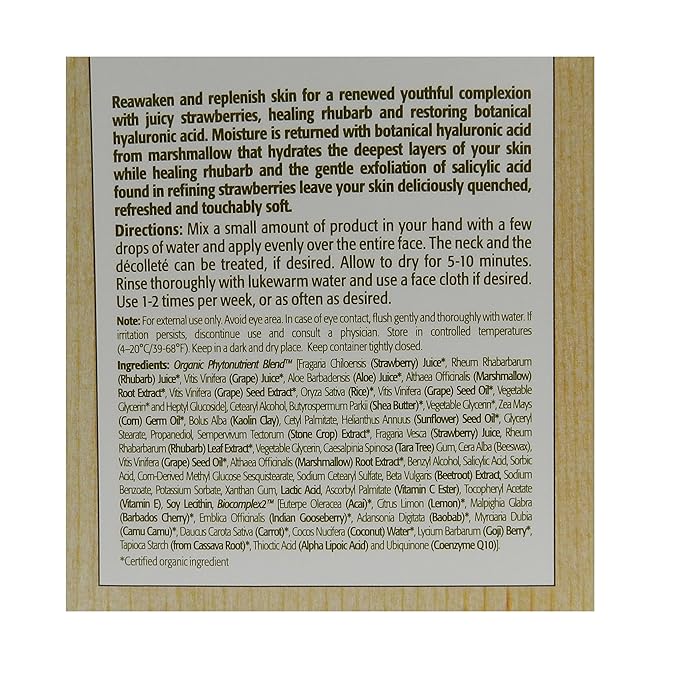 Eminence Organic Skincare Strawberry Rhubarb Masque with Vegan Friendly Hyaluronic Acid, 2 Fluid Ounce