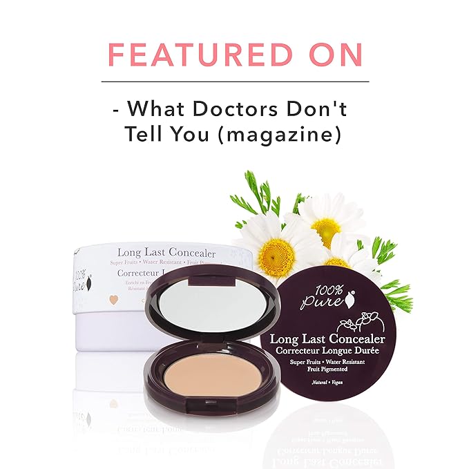 100% PURE Fruit Pigmented Long Last Compact Concealer, Creme, Full Coverage Concealer, Diminish Dark Circles (Light with Neutral Undertones) - 0.11oz