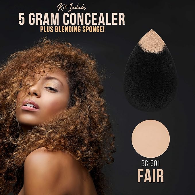 - 3 Additional Items: A 5 gram jar of Belloccio's fair shade concealer along with an egg shaped makeup blending sponge to apply it, plus a 1 oz. bottle of Belloccio's airbrush makeup finishing and setting spray.