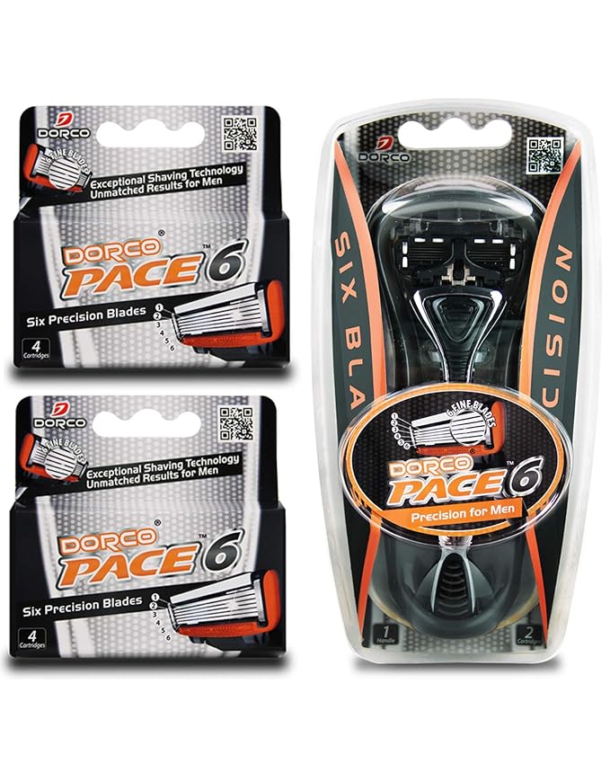 Dorco Pace 6 - Six Blade Razor Blade System - Value Pack (10 Pack + 1 Handle)