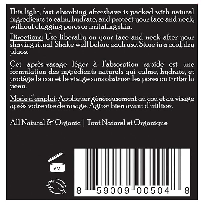 - How It Works: Botanical extracts repair the skin and remove bacteria from the pores after shaving. This prevents irritation and ingrown hairs. Natural hydrators in this natural, alcohol-free men's aftershave lotion infuse the skin with moisture.