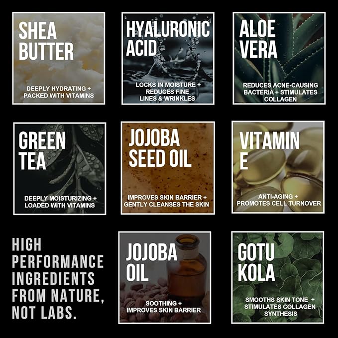 - 🏴 FOR DIVERSE SKIN TYPES: Ideal for most ages and ethnicities, normal, sensitive, oily, acne-prone, or dry complexions. Our fast-absorbing formula enhances your mens skin care routine without clogging pores. Optimize and save money by replacing multiple products in your regimen.
