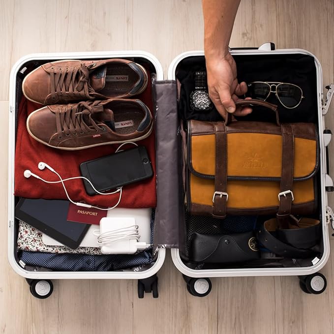 Vetelli Leather Toiletry Bag for Men - Water Resistant, 2 Zippered Internal Pockets, 2 Snap-Fastened Internal Pockets, and Hanging Hook.