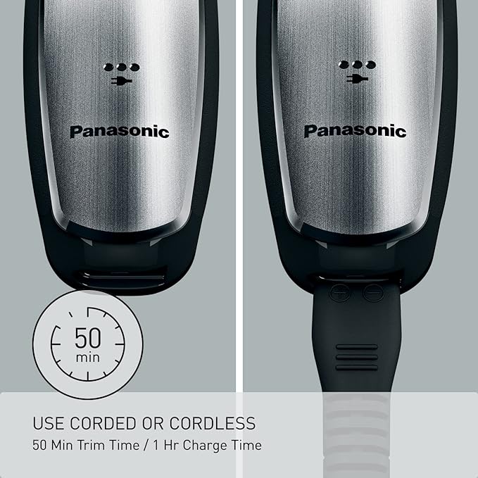 Panasonic Multi-Groomer Men’s Trimmer for Beard, Hair and Body, 39 Trim Length Settings with 3 Attachments, Corded/Cordless Operation – ER-GB80-S (Silver)