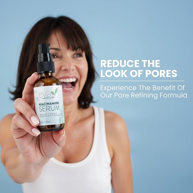 Eva Naturals Niacinamide 5% Serum for Face – B3 Pore Minimizer, Acne Treatment & Dark Spot Corrector with Hyaluronic Acid, Vitamin E, Aloe & Neem – Anti-Aging, Non-Greasy, Hydrating, 2oz