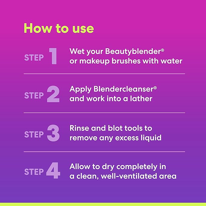 - Directions: This liquid cleanser is super easy to use. all you need to do is wet your beautyblender sponge or brush, swirl the cleanser onto stains to create a lather, then rinse and squeeze to remove excess cleanser and water. once completely dry you can use your applicator again.