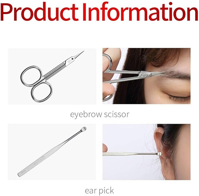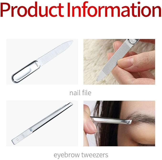 - Included (Total 7 PCS: Small Nail Clipper, Tweezers, Cuticle Trimmer, Beauty Scissors, File, V-Shaped Push Stick, Ear Pick: TS-4112B)
