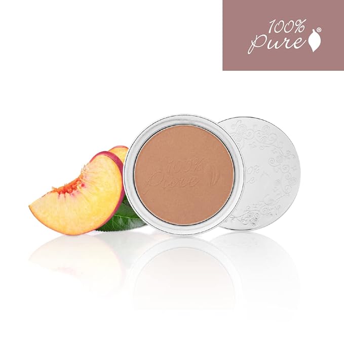 100% PURE Powder Foundation Matte Finish Face Makeup - Oil Absorbing Pressed Poreless Concealer - Vegan Fruit Pigmented Toffee Color (Tan Shade w/Neutral Undertones) - 0.32 Oz