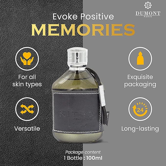 - This 100 ml of black beauty is powerful enough to attract many females in a single sniff. Avail the benefits of this super black and manly perfume by the ultimate house of Dumont. This deep & dark scent is meant to lighten up the attraction and attention. So, are you ready?