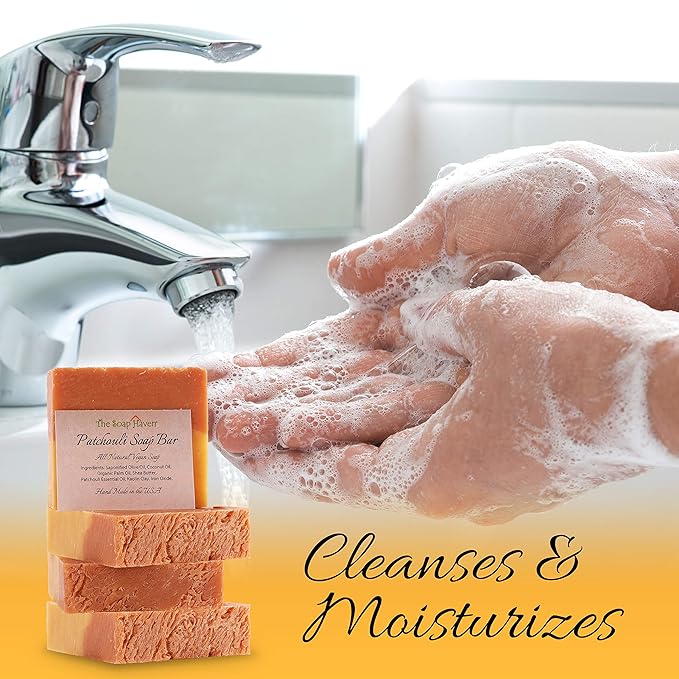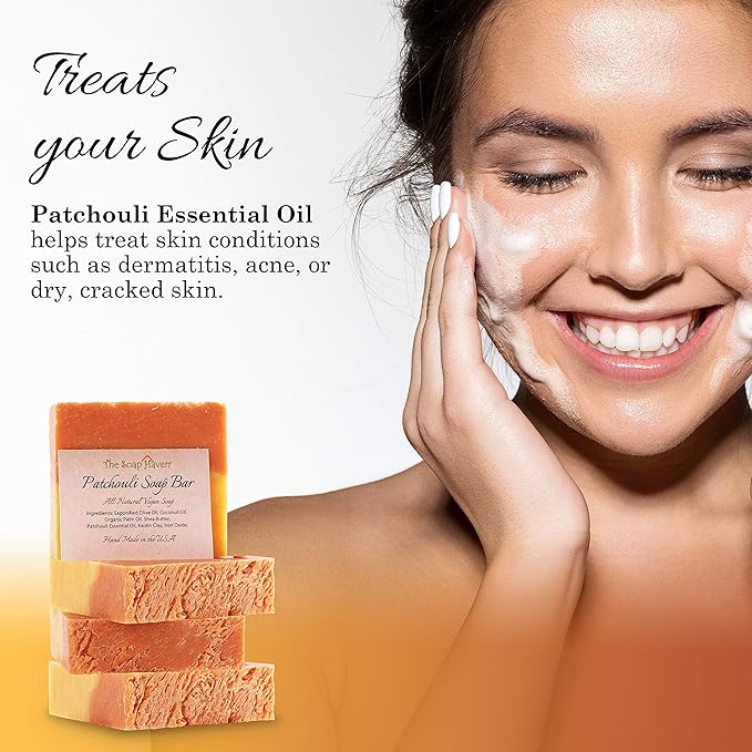 Patchouli Soap Bar - 4 Large 4.5 oz Bars. Handmade in USA with 100% Natural, Non-GMO ingredients
