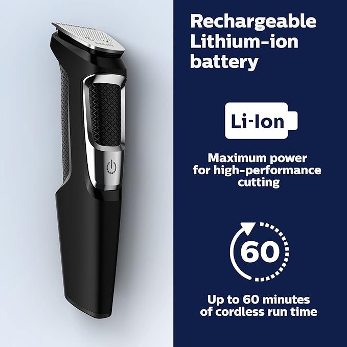 Norelco Philips Multigroomer All-in-One Trimmer Series 3000, 13 Piece Mens Grooming Kit, for Beard, Face, Nose, and Ear Hair Trimmer and Hair Clipper, NO Blade Oil Needed, MG3750/60