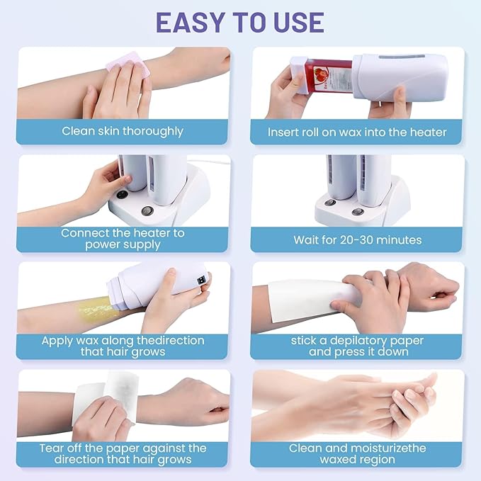 - Easy to use and operate - Simply install the roller wax cartridge, place it on the base, plug in the power, and the machine will automatically start heating. You can observe the melting of the wax through the window to see if it reaches your desired consistency. It's not recommended to wait too long as it may become excessively hot when used.