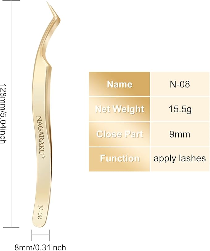 NAGARAKU Eyelash Extensions Tweezers for make Fans Curved Individual Mega Volume Lashes Precision Stainless Steel Professional (N-08)