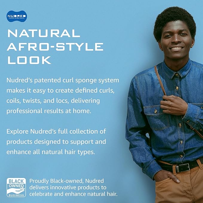- NATURAL AFRO STYLE LOOK: Nudred is The original & patented curl sponge system with a myriad of products to cater to all! Nudred's styling curl brush for natural black hair is used for different degrees of locks, curls, or dreads. Using our hair brush with loose holes, can help maintain your hair and keep the coils loose and distinct. Sponge brush your hair for added texture and to help bring out the curls in your lovely texture for a new look. Keep your coil style looking great and popping!