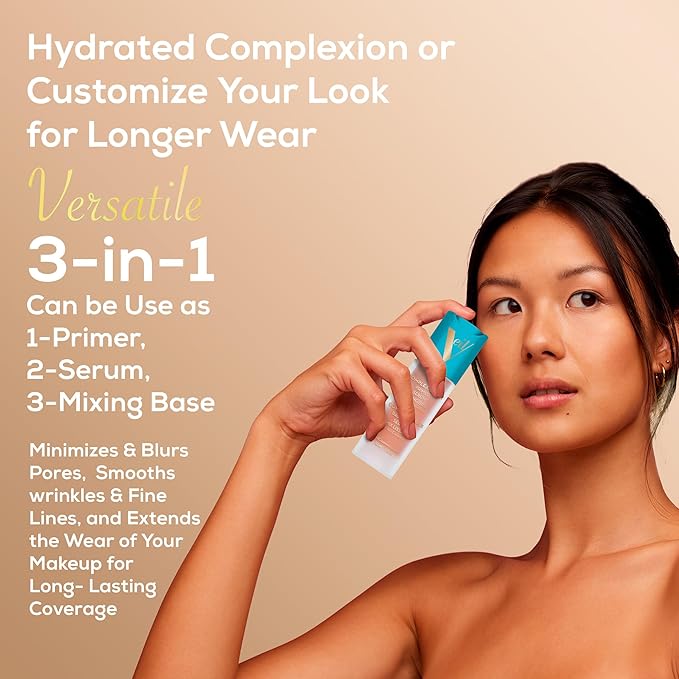 - 3-IN-1 FACE PRIMER SERUM – Veil Cosmetics Sunset Light 3-in-1 Primer, Serum, and Mixing Base, minimizes and blurs pores, smooths wrinkles and fine lines, and extends the wear of your makeup for long-lasting coverage. Wear it under your makeup, by itself for a hydrated complexion, or use it as a mixing base with your makeup products to customize your look for longer wear.