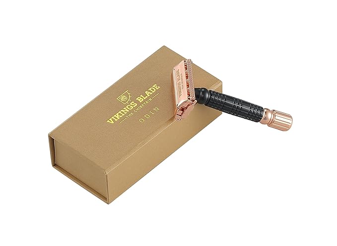 VIKINGS BLADE Double Edge Safety Razor for Men + 5 Swedish Steel Blades + Luxury Case. Smooth, Reusable, Eco-Friendly (Chieftain “Odin”)