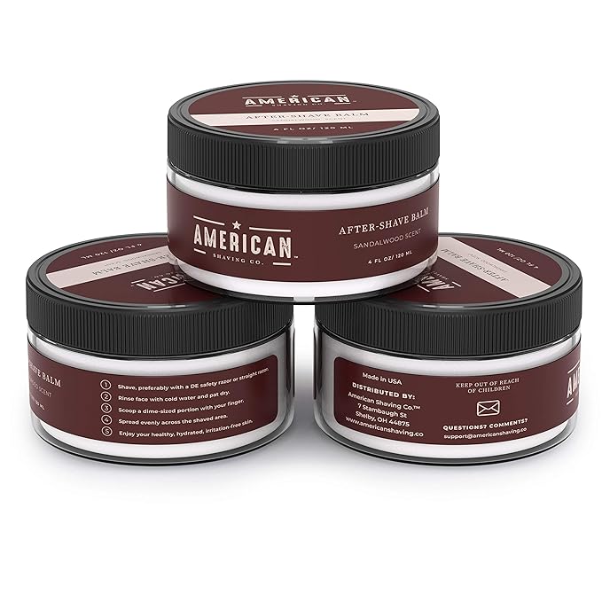 - Special Feature : WORKS ON ALL SKIN TYPES: Men of any age with any skin type need gentle, protective hydration that lasts all day. Even if you have the most sensitive skin, American Shaving After-Shave Balm is the secret to post-shave bliss., SATISFSATISFACTION GUARANTEED: The best shave you've ever had, or it's free. If for any reason you aren't 100% satisfied with your purchase, we’ll give you a full refund, no return is necessary. Taxes and shipping included. No questions asked.ACTION GUARANTEED: The best shave you've ever had, or it's free. If for any reason you aren't 100% satisfied with your purchase, we’ll give you a full refund, no return necessary. Taxes and shipping included. No questions asked., IMMEDIATELY REPLENISHING POST-SAHVE BALM: With our soothing & fast-absorbing balm, dry and irritated skin instantly gets hydrated and refreshed after the damaging effects of shaving. Our gentle alcohol-free formula helps revitalize and condition your skin, leaving it feeling noticeably softer and healthier., CALMS IRRITATION AND ELIMINATES RAZOR BURN: aftershave balm gives unsurpassed cooling and a refreshing finish to your shave. Since it's non-drying, it does not sting or burn but calms and soothes irritated skin caused by shaving. This after-shave lotion is excellent for all types of skins., ORIGINAL SCENT(UNSCENTED): The first thing you'll notice with our premium after-shave balm is its refreshing, clean, masculine scent, specifically formulated to impress and invigorate your skin. WORKS ON ALL SKIN TYPES: Men of any age with any skin type need gentle, protective hydration that lasts all day. Even if you have the most sens… See more