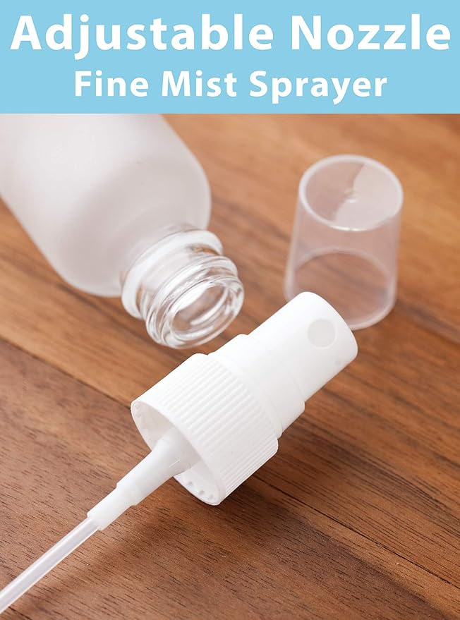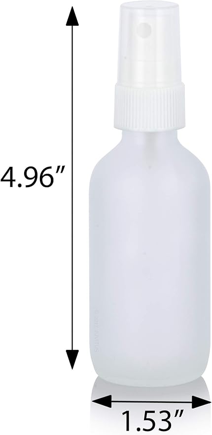 JUVITUS 2 oz Frosted Clear Glass Boston Round Bottle with White Fine Mist Spray (12 Pack)