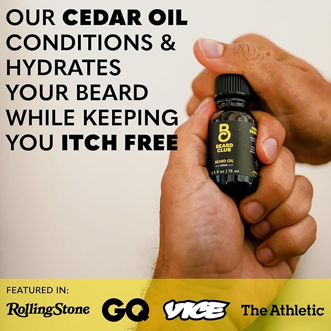 - CEDAR BEARD OIL & BOAR BRISTLE BEARD BRUSH - A blend of Cedar Wood Oil and Sweet Almond Oil to help stimulate healthy facial hair, strengthen roots, thicken hair, activate growth and eliminate itch while softening skin, evenly distribute with our beard brush