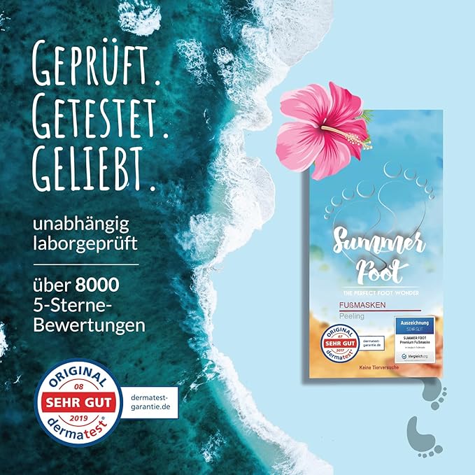 - DERMA TESTED - Exceptional quality, safety & skin tolerance of our foot mask is guaranteed by the Original Dermatest seal of approval - a world-renowned, independent dermatological testing institute.