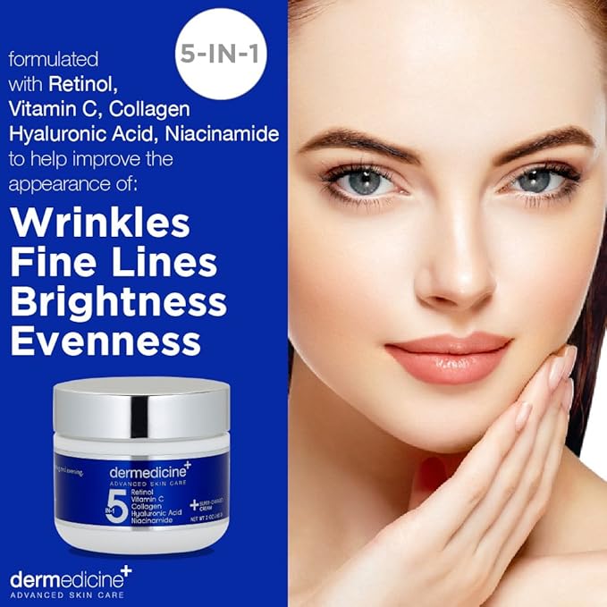 5 in 1 Retinol, Vitamin C, Collagen, Hyaluronic Acid and Niacinamide | Potent Face Cream Fine Lines and Wrinkles and Reduce Appearance of Dark Spots 2 oz