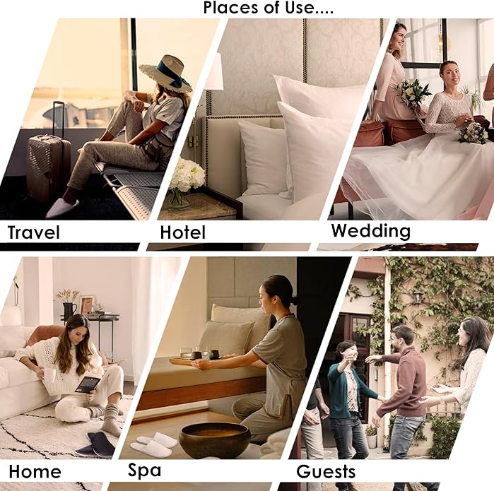 - ⭐MULTI-PURPOSE COMFORT: Designed for spas, conference centers, air travel, Airbnb guests, vacation rentals, restaurants, family gatherings, weddings, and more, these slippers offer convenience for various occasions while promoting a shoeless home for cleanliness and comfort