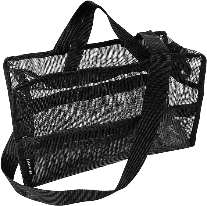 SHANY Collapsible Makeup Tools Travel Mesh Bag – Large See-Thru Travel Tote with Shoulder Straps – Water-Resistant with Zippered Pockets – Black