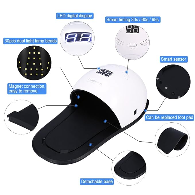 - FASHIONABLE DUTRABLE: Flexible combination and replaceable foot pad for both manicure and pedicure. Detachable tray design, easy to clean and sanitary. 30pcs LED light beads with a life span of 50000 hours nonstop, which is enough for long-term use.