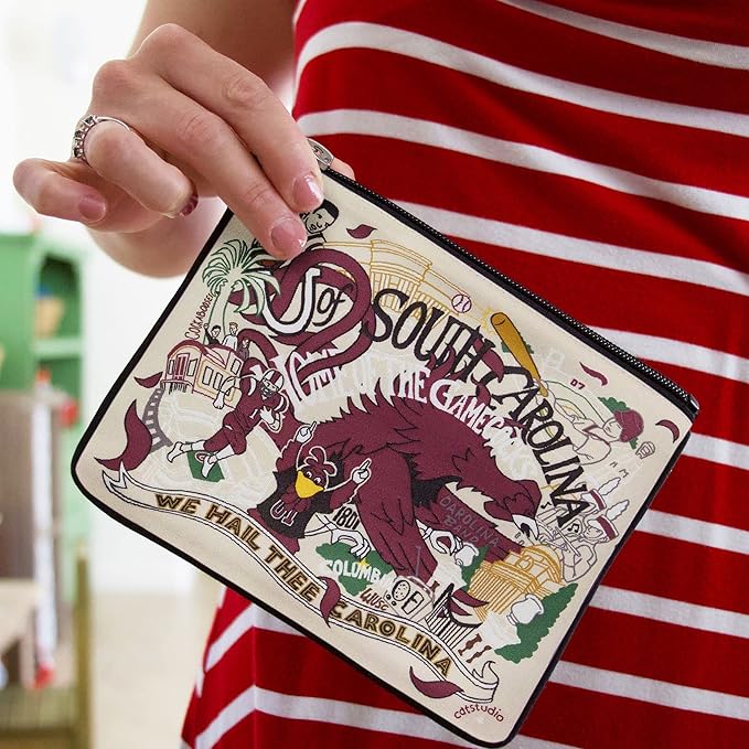 - UNIVERSITY OF SC ZIP POUCH Our hand-drawn, original artwork is intricately woven onto this versatile travel accessory. Featuring University of South Carolina's iconography to capture the essence of the college. Landmarks and details only insiders know are featured because each college is much more than a logo—it's an experience! An ideal USC gift for Gamecocks fans!