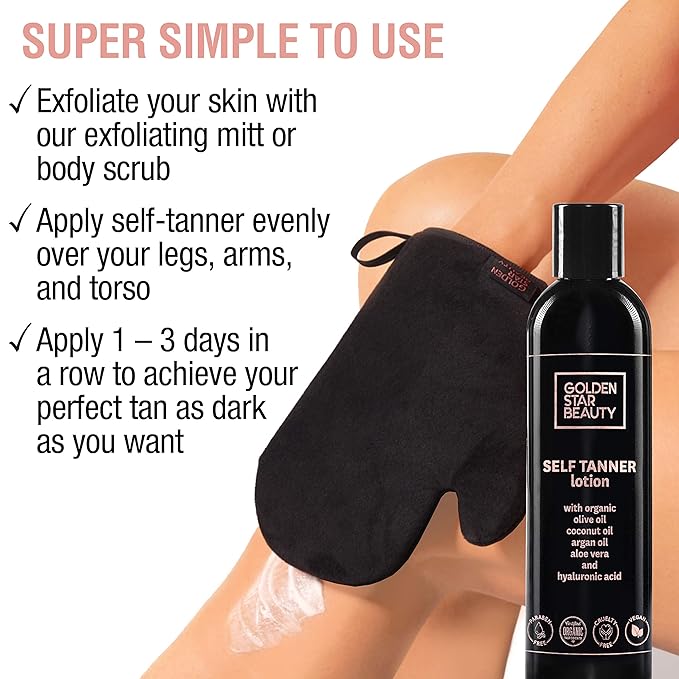 - Easy And Flawless Application: Whether you are a beginner or an experienced self tanner, this formula offers an effortless application for a natural looking tan. for an even easier application process! So, just use your mitt with the directions and the tips in our printed pamphlet for a perfect tan! And if you need any help, we are here for you to answer any questions.