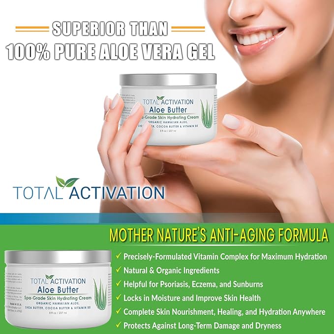 Total Activation Large 8 oz Hawaiian Aloe Vera Cream for Face, Moisturizer to use Day or Night, Anti Wrinkle Aloe Vera Lotion for Skin, Sunburn Relief, and Dry Skin