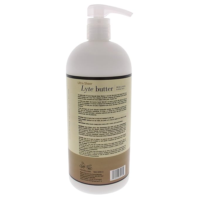 Cuccio Naturale Lyte Ultra-Sheer Body Butter - Replenishing Scented Moisturizer Cream - Deep Hydration To Repair Dry Skin - All Natural, Cruelty-Free Formula - White Limetta And Aloe Vera - 32 Oz